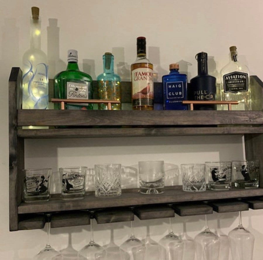 Handcrafted Pine Wall Mounted Wine Rack with Copper T-Bar