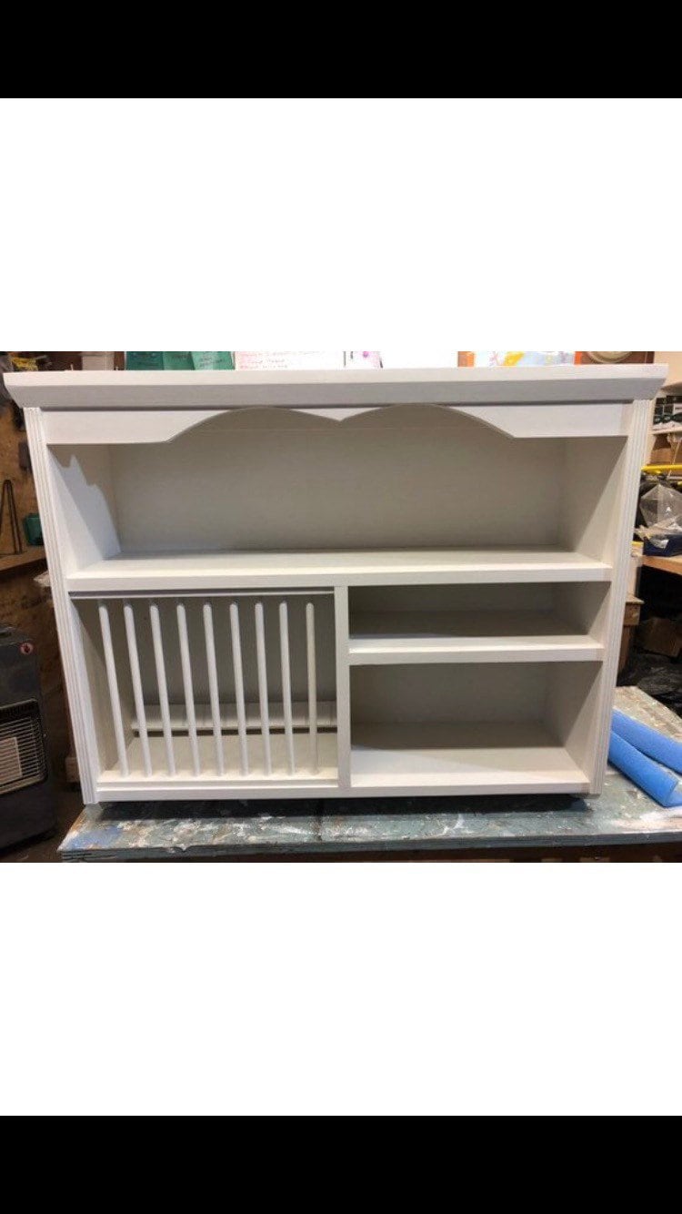 This plate rack holds 10 plates up to 300mm in diameter and comes with various size open shelves