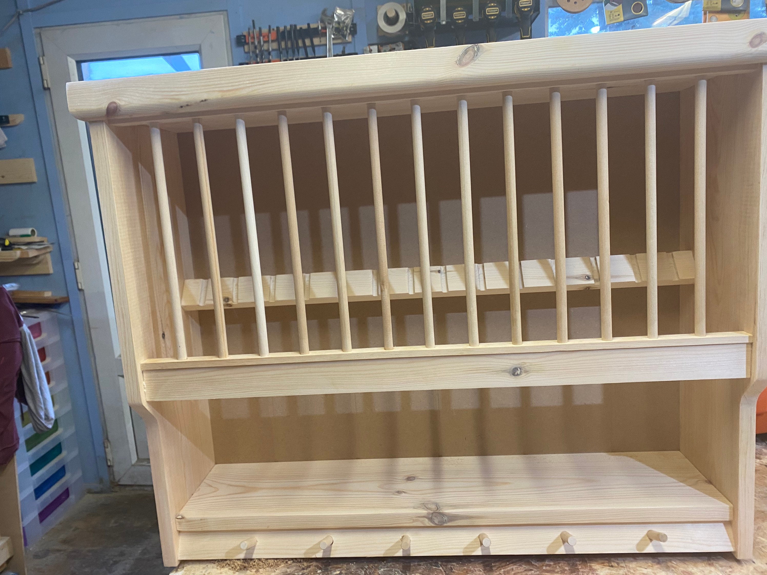 This plate rack holds 14 plates up to 300mm in diameter and comes with a lower shelf, suitable for bowls. The Kinder also comes with a dowel cup bar, suitable for holding 6 mugs.